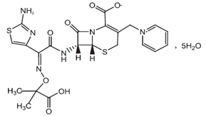 化學(xué)名稱:(6R,7R)-7-[[(2-氨基-4-噻唑基)-[(l-羧基-1-甲基乙氧基)亞氨基]乙酰基]氨基]-2-羧基-8-氧代-5-硫雜-1-氮雜雙環(huán)[4.2.0]辛-2-烯-3-甲基吡啶鎓內(nèi)鹽五水合物